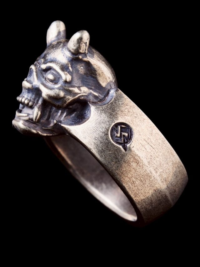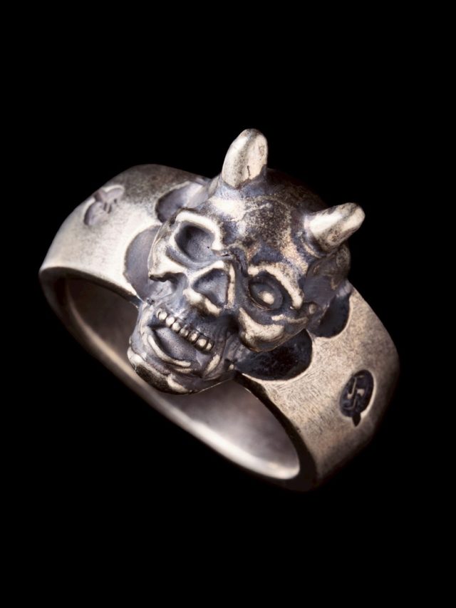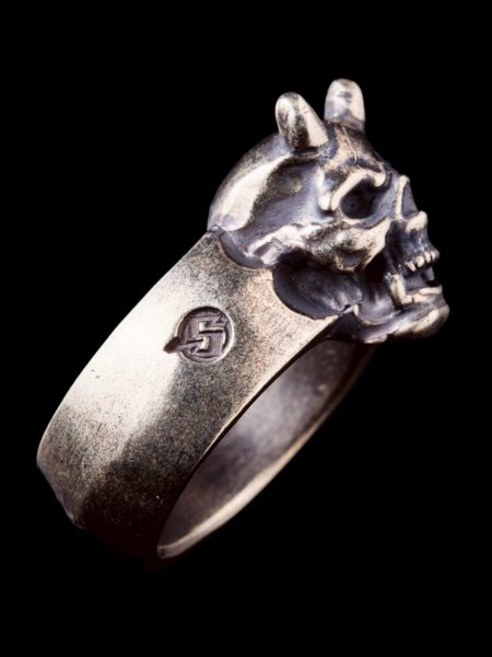 鬼スカルリング 30000円 サイズは15号17号19号21号23号の5サイズ 56タトゥーの岸さんが描いてくださった鬼スカルを シルバーリングにて忠実に再現しました